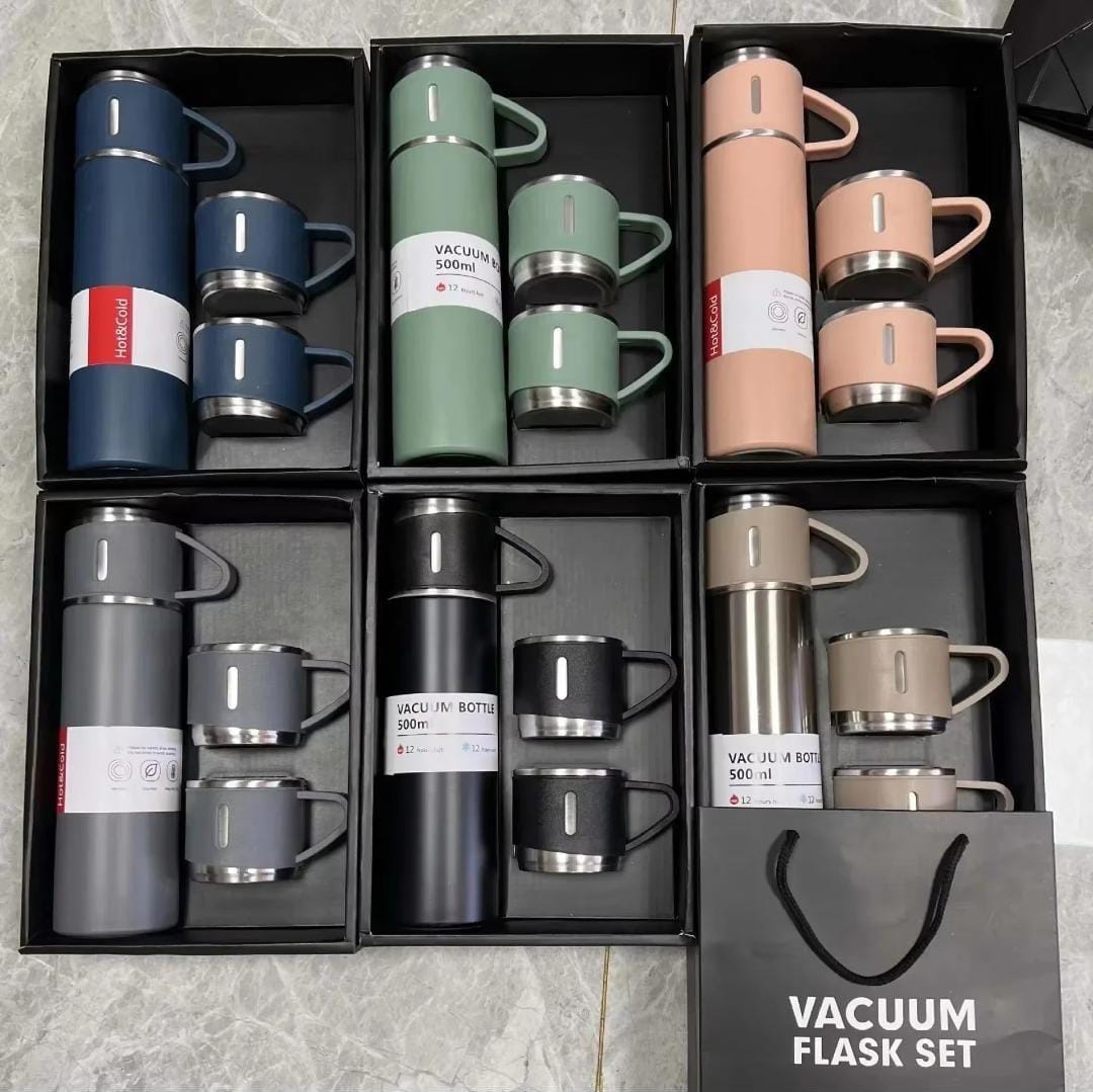 3 Cup Double-Layer Stainless Steel Vacuum Flask Set